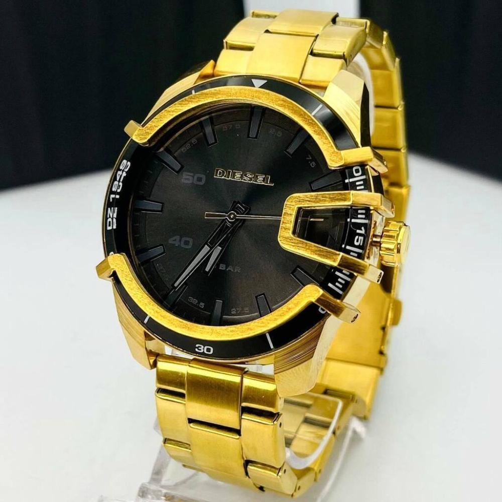 Relógio 1 Primeira Linha - 5 bar - dourado e preto - Pulseira de aço + Caixa