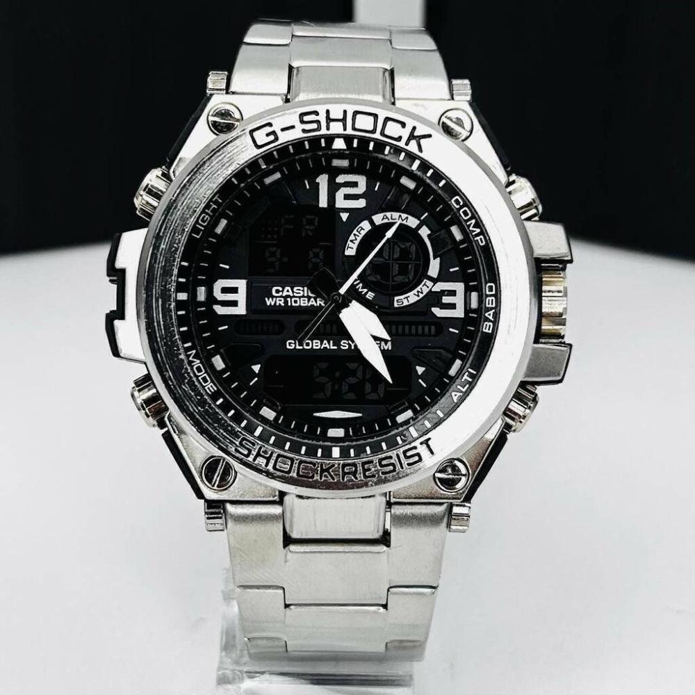 Relógio Gshock 1 Linha diamante - Steel - prata e preto - Pulseira de aço + Caixa