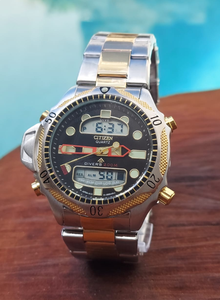 O Citizen Promaster Aqualand C500 tem um visual moderno com um toque retrô, vintage, que remete aos anos 1980. Um relógio Citizen é uma fusão elegante de design contemporâneo e precisão japonesa. Os relógios Citizen oferecem estilo sofisticado, durabilidade e funcionalidades avançadas, tornando-os uma escolha confiável para quem busca elegância e desempenho. - Marca: Citizen- Modelo C 500 com Digital - Gênero: Masculino - Material da caixa: Aço Inoxidável- Vidro em Cristal mineral resistente a arranhões-Ponteiros e marcações Luminescentes - Material da pulseira: Aço Inoxidável - Cor da caixa: Prata - Cor da pulseira: borracha - Cor do visor: Vermelho - Catraca giratória: Possui - Mecanismo: Quartzo - Pulseira: Ajustável - Fecho Glidelock com trava de Segurança - Banho: Sim - Lavar carro: Sim - Lavar mãos: Sim - Chuva: Sim - Calendário: Possui - Alarme: sim - Tamanho máquina: Diâmetro: 41mm e Espessura: 12mm - Tamanho pulseira: Comprimento: 230mm e Largura: 24mm - Peso: 190g FOTOS REAIS DO PRODUTO Ver descrição completa