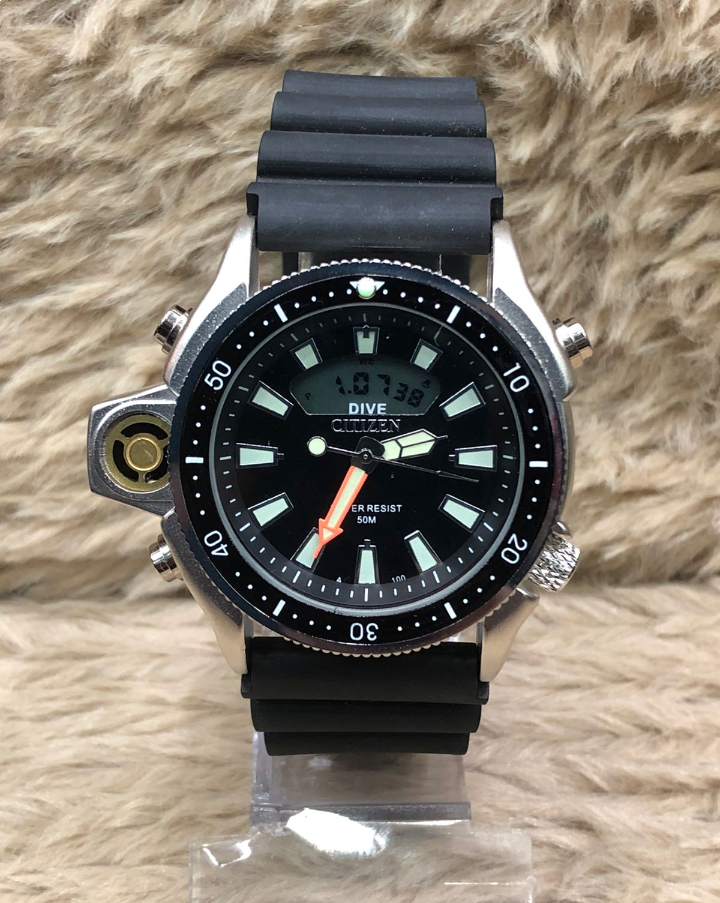 Marca e Modelo: Citizen Aqualand Analógico: sim Digital: sim Tamanho da caixa: 42mm Peso: 108 gramas Cor da caixa: prata Cor da pulseira: preto Cor do fundo: laranja e verde Funcionamento: 100% Movimento maquinário: bateria Qualidade Maquinário: chinês Catraca: giratória Material da caixa: metal Material da pulseira: borracha A prova d'água? sim Garantia: sim de 2 meses no maquinário leia regras abaixo e no rodapé do site. FOTOS REAIS DO PRODUTO PRODUZIDAS PELA NOSSA EMPRESA! Ver descrição completa