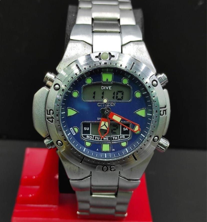 FICHA TÉCNICA RELÓGIO LINHA DIAMANTE: Marca e Modelo: Citizen Aqualand Analógico: sim Digital: sim Tamanho da caixa: 50mm Peso: 158 gramas Cor da caixa: prata Cor da pulseira: prata Cor do fundo: amarelo, verde e vermelho Funcionamento: 100% Movimento maquinário: bateria Qualidade Maquinário: chinês Catraca: giratória Material da caixa: metal Material da pulseira: aço A prova d'água? sim Garantia: sim de 2 meses no maquinário leia regras abaixo e no rodapé do site. Ver descrição completa