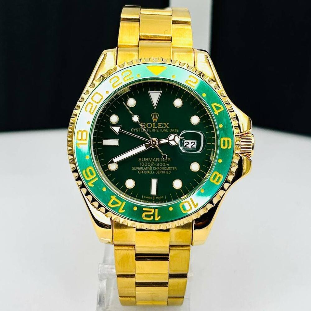 Relógio Rolex 1ª Linha Submariner 4 ponteiras No Atacado - Dourado e verde - Pulseira de aço