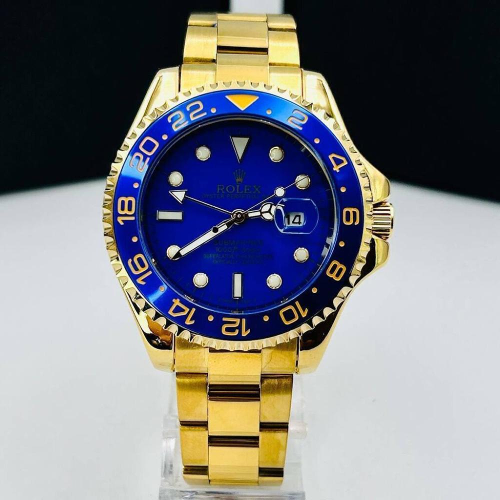 Relógio Rolex Atacado 1ª Linha Submariner 4 ponteiras - dourado e azul - Pulseira de aço